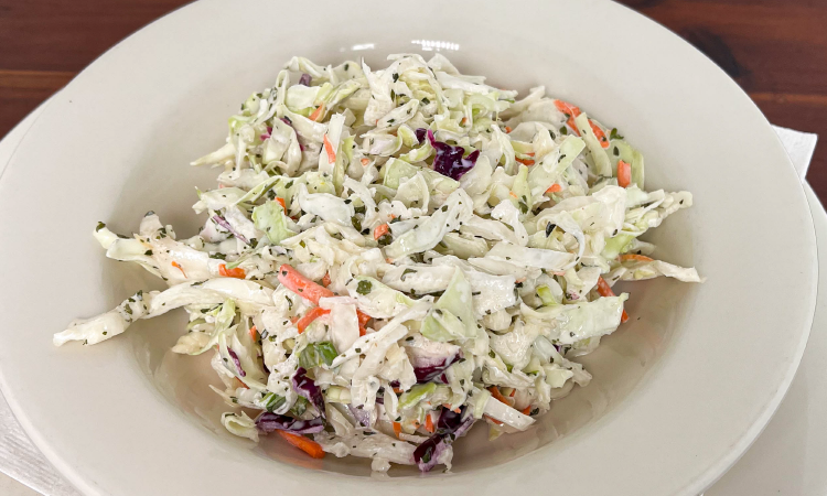 Chopped romaine, assorted spring greens, grilled chicken, Granny Smith apples, cucumber, candied pecans, craisins, Honey Lime dressing & bleu cheese crumbles.